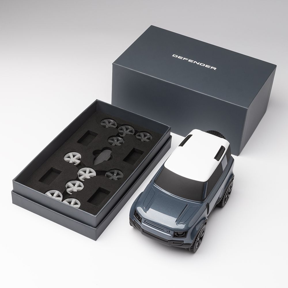 タスマンブルーのディフェンダーアイコンモデル。完璧なフォルムと時代を超越したデザインで新しいディフェンダーを称えます。象徴的なヘッドライトとピラーのディテールが特徴です。
