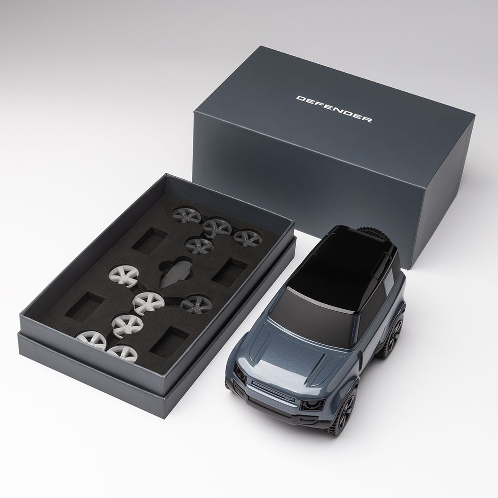 タスマンブルーのディフェンダーアイコンモデル。完璧なフォルムと時代を超越したデザインで新しいディフェンダーを称えます。象徴的なヘッドライトとピラーのディテールが特徴です。