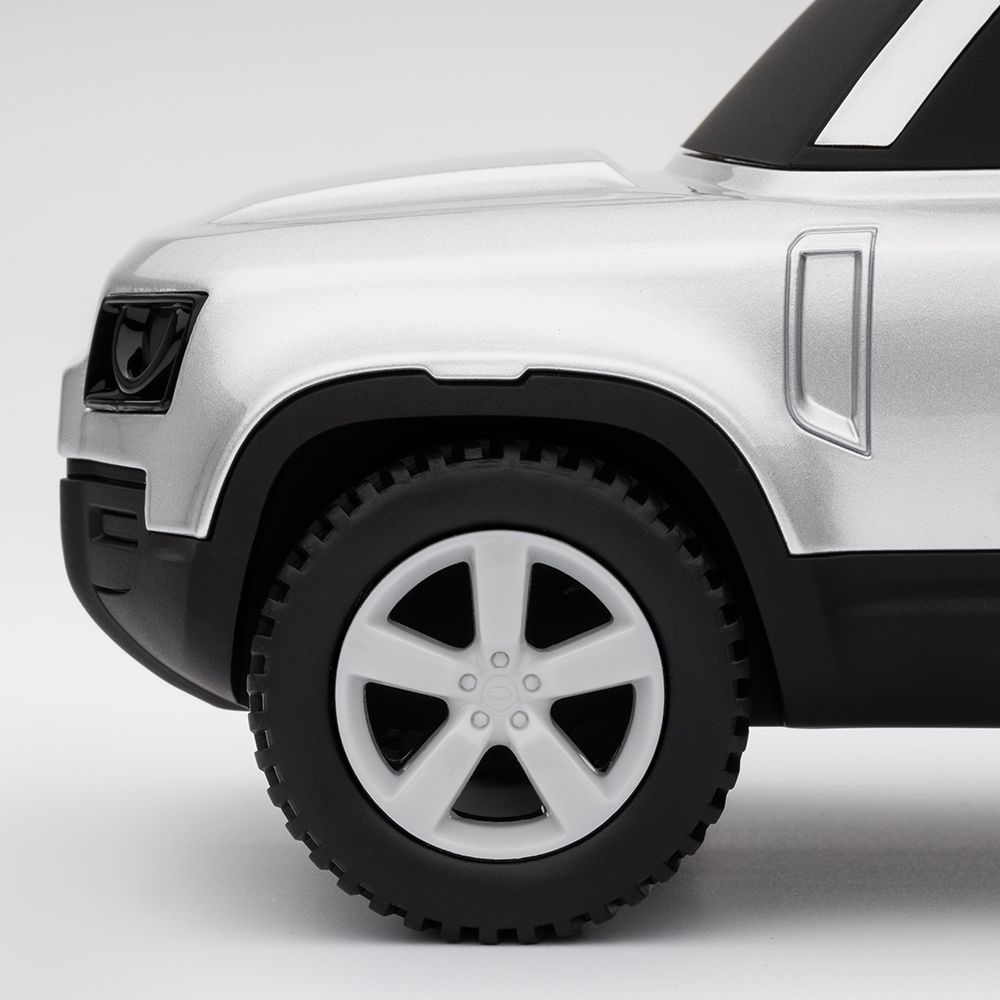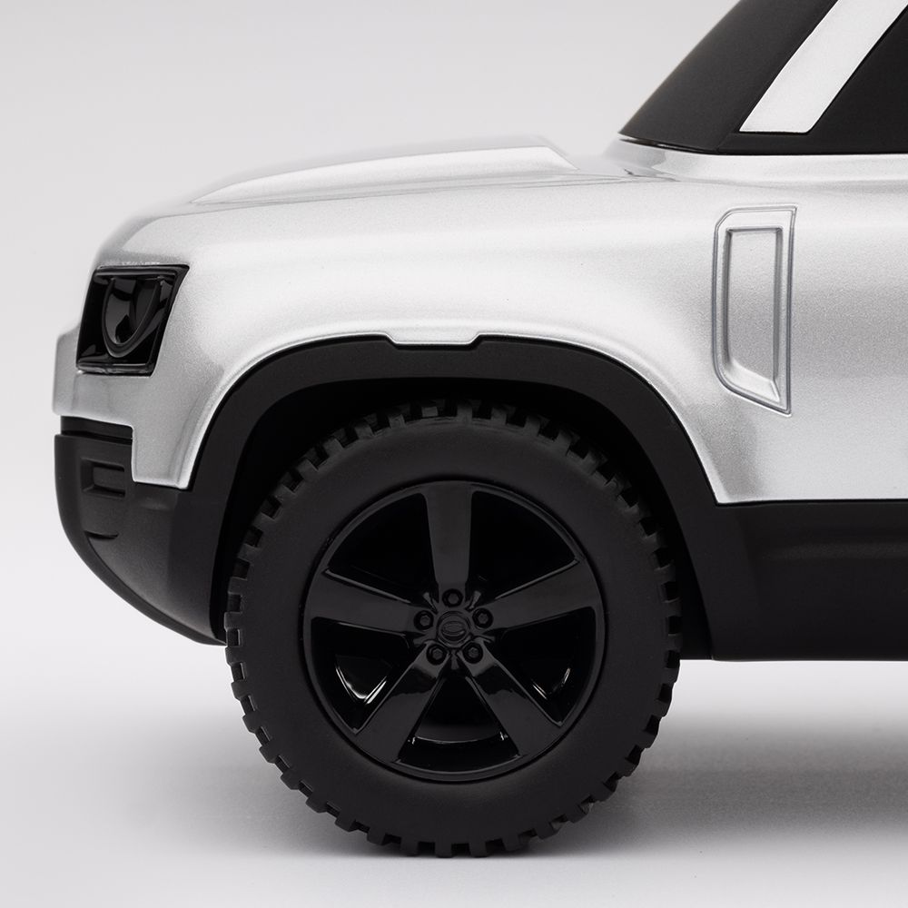 ハクバ・シルバーのディフェンダーアイコンモデル。完璧なフォルムと時代を超越したデザインで新しいディフェンダーを称えます。象徴的なヘッドライトとピラーのディテールが特徴です。